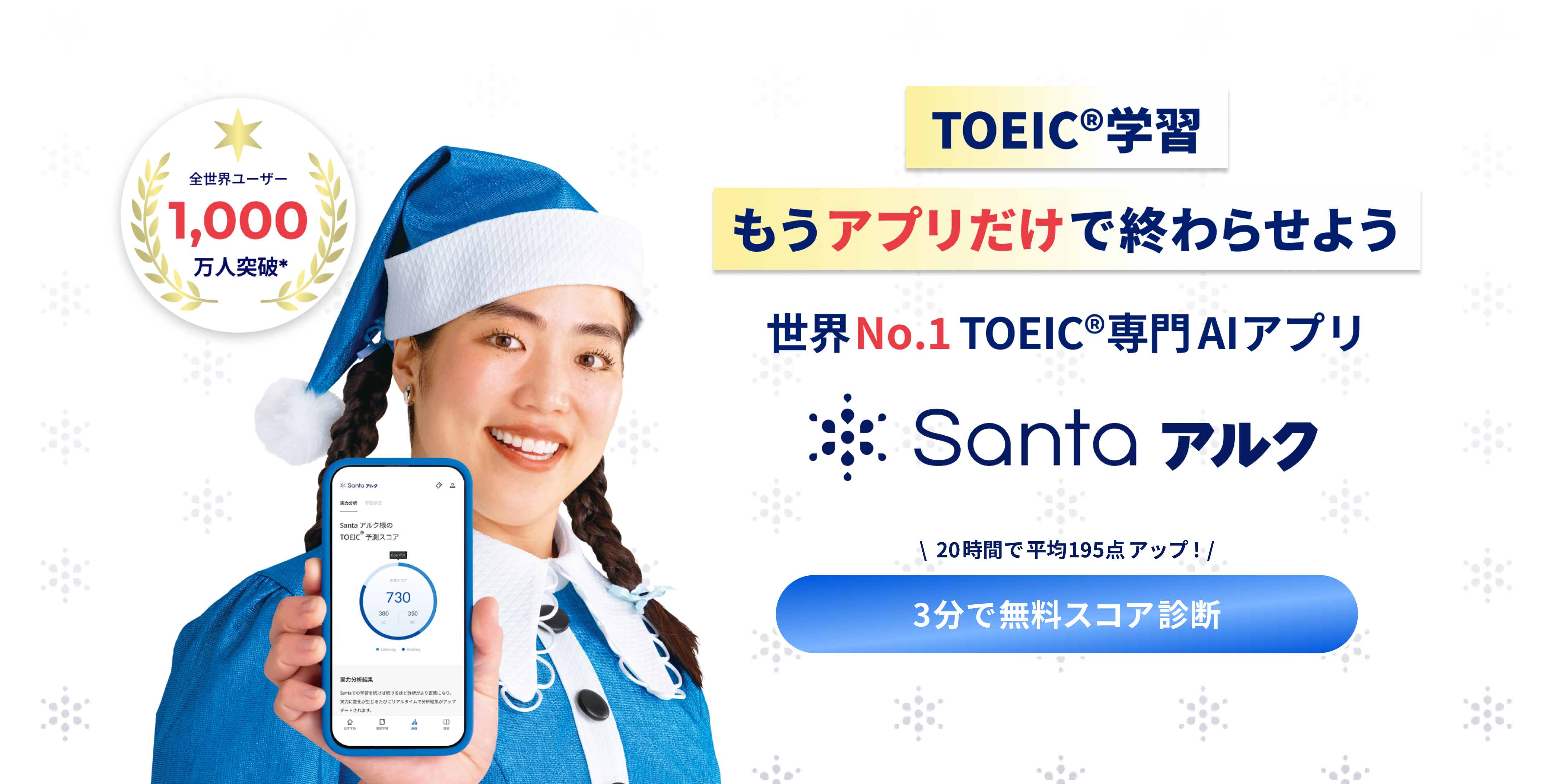 「Santa」は、AIを活用したTOEIC対策アプリです。アルクが開発・運営しています。